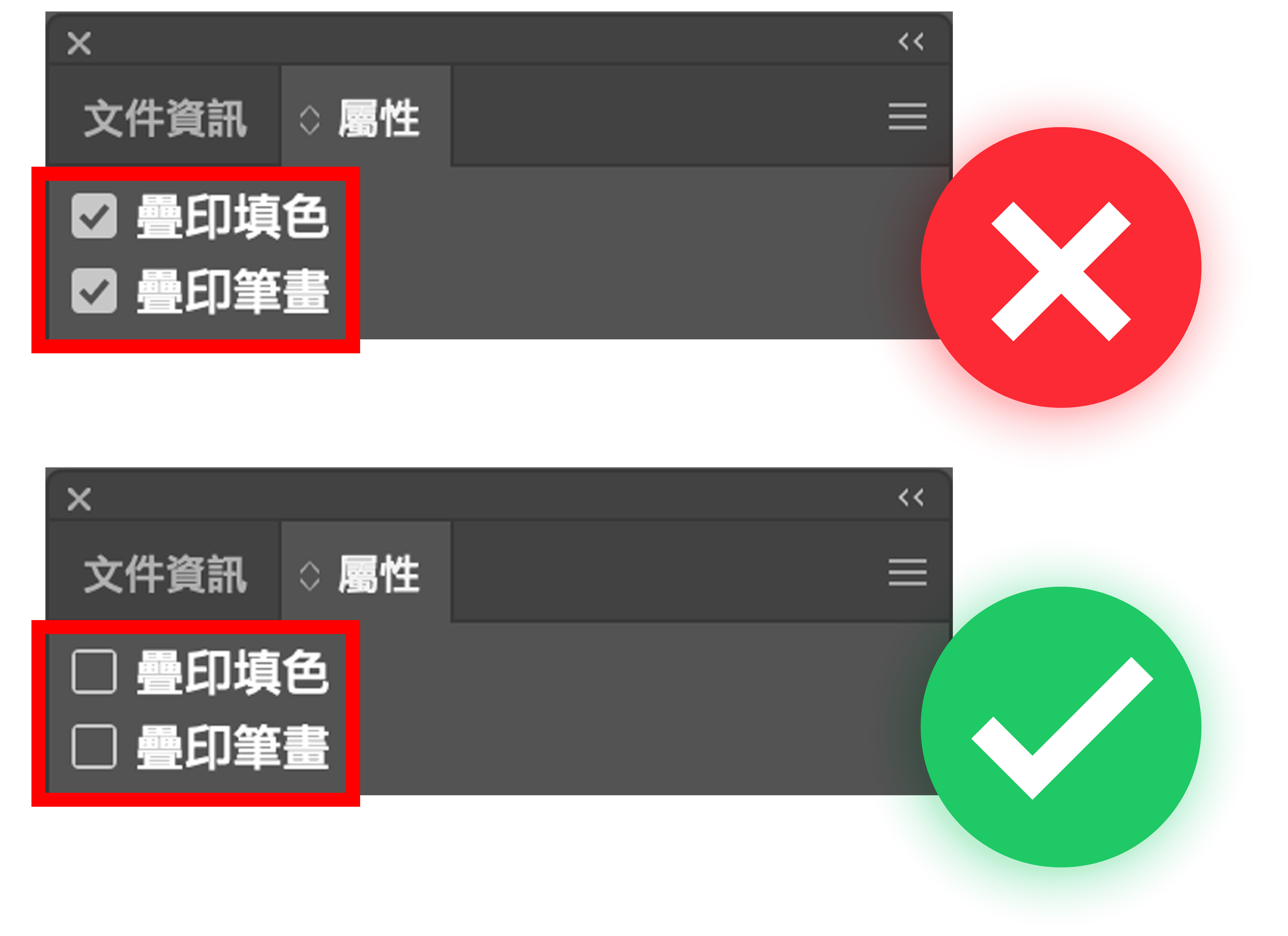 所以在製圖時請千萬【不要設定疊印填色、疊印筆畫】!