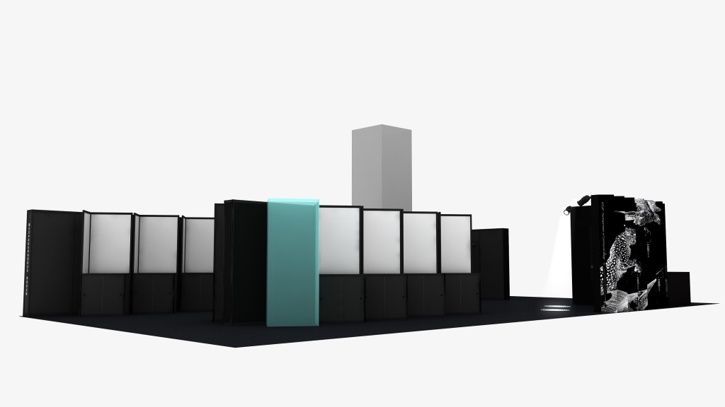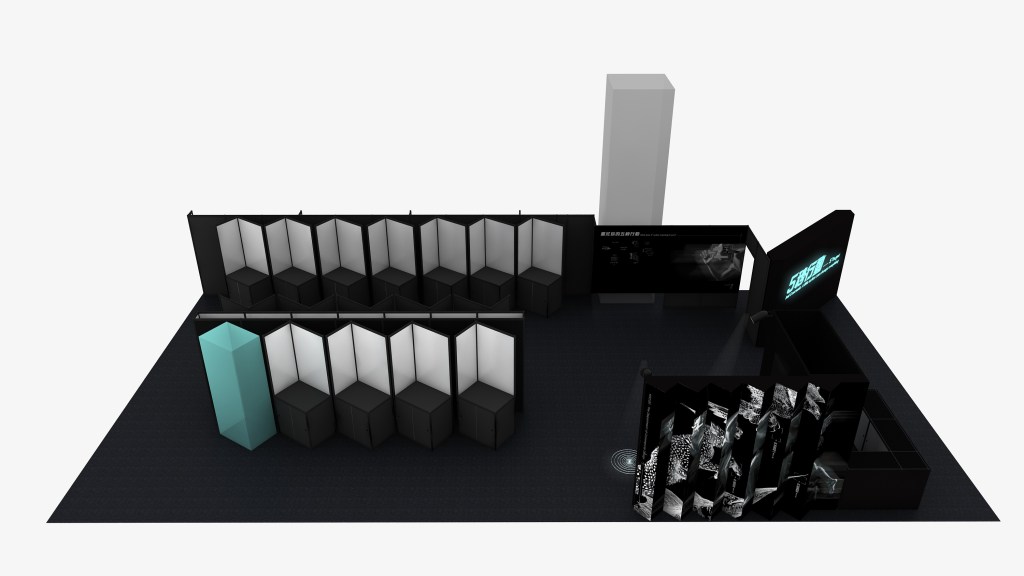 來做設計為了營造更吸睛的視覺效果,規劃使用GOBO投射燈,將主視覺的漣漪設計成GOBO片,增加展場燈光效果!不但與整體風格完美搭配,更讓視覺形象從平面跳躍而出。