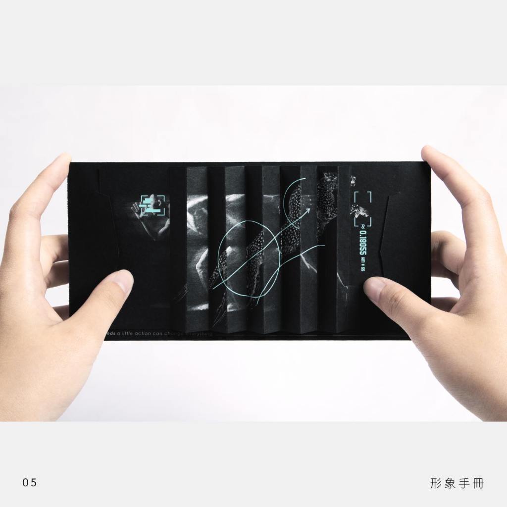 像是在主視覺的系列海報中,刻意將畫面分割成一條一條的形式,透過動手凹折後呈現扇形,由不同視角去觀看,將「行動」實踐於海報中,在五秒中巧妙的領會此次主視覺的設計理念!