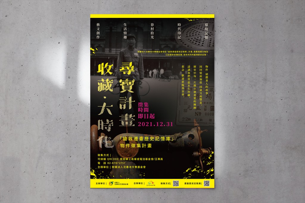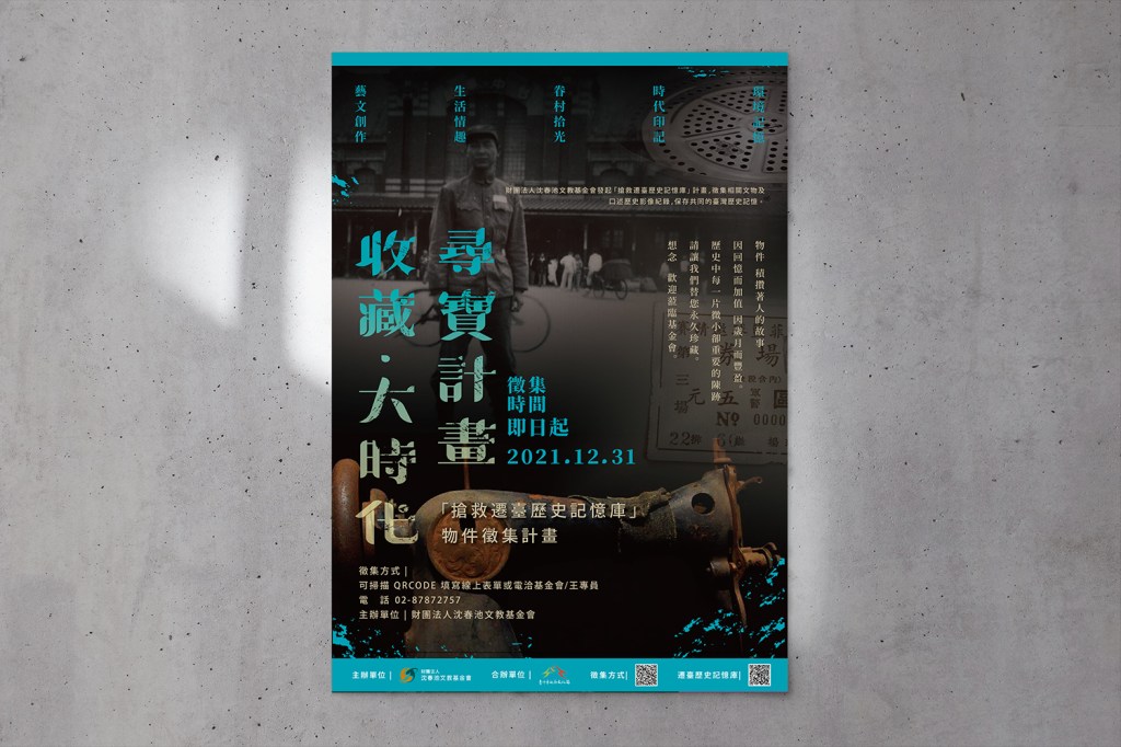 來做設計這次為財團法人沈春池文教基金會發起的「搶救遷臺歷史記憶庫」計畫,設計了形象海報以及宣傳摺頁。