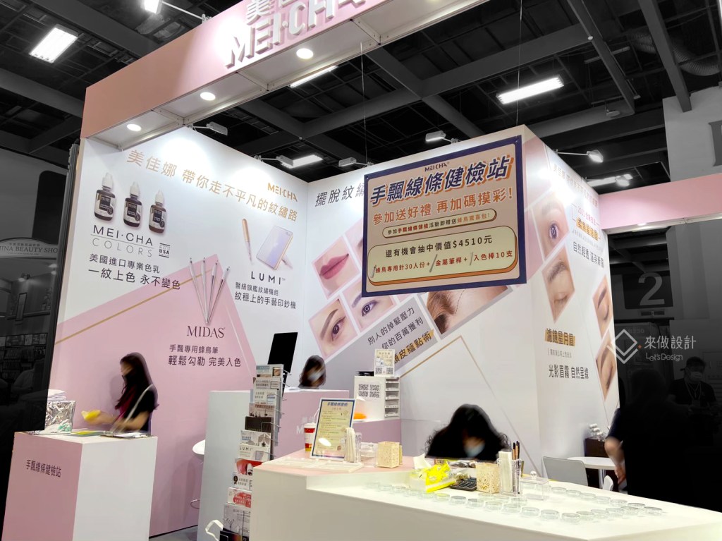 美佳娜展出的重點為展示紋繡機器的特點與現場實際施作的過程,來做設計便在本次美容展規劃了展示區,擺放美容床與紋繡器材,讓顧客能夠在現場享受專業美妝師的紋繡技法,並透過大電視現場連線展示給路過參加的民眾,吸引人潮駐足、激發好奇心、刺激現場消費。