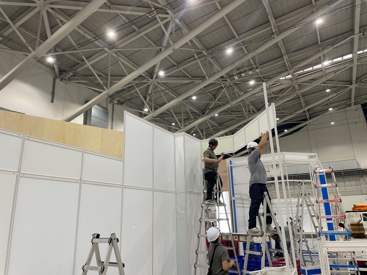 進場施工時會因應展覽的規模、施工的複雜度、展出場地的規範去做調整,大型商業展覽則是會分成兩天的進場時間,依照展館大會規定的時間安排進場,來做設計會負責聯繫進場工班,將組合展版、形象輸出、影音設備、燈光水電、傢俱租賃等進場時間妥善安排,確保師傅們在約定的進場時間提前到達並順利完成施工。