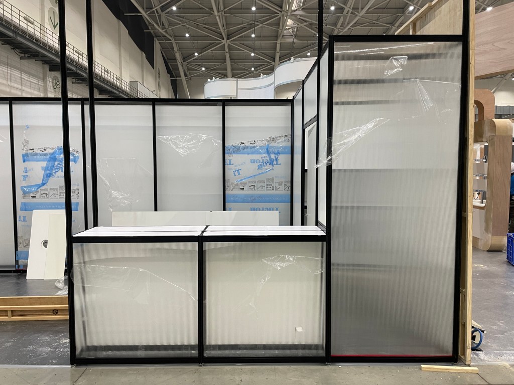 - 攤位視覺空間感放大:雖然攤位面積有限,但我們運用了中空板通透的特技,搭配燈光的巧妙運用,讓攤位的視覺空間感得到放大。中空板的使用使攤位看起來更加通透,同時燈光的照射創造出舒適的環境氛圍,使觀眾在展覽中能夠輕鬆感受到我們產品的魅力。