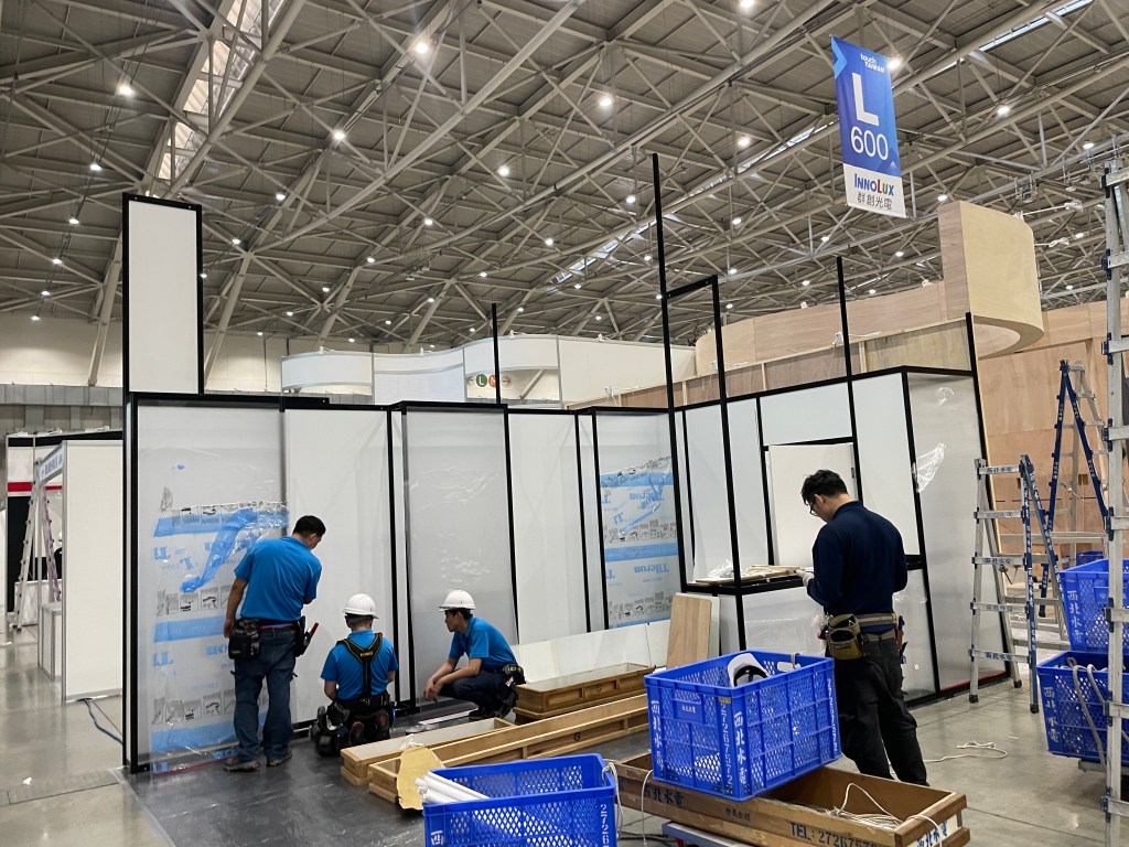 進場施工時會因應展覽的規模、施工的複雜度、展出場地的規範去做調整,大型商業展覽則是會分成兩天的進場時間,依照展館大會規定的時間安排進場,來做設計會負責聯繫進場工班,將組合展版、形象輸出、影音設備、燈光水電、傢俱租賃等進場時間妥善安排,確保師傅們在約定的進場時間提前到達並順利完成施工。