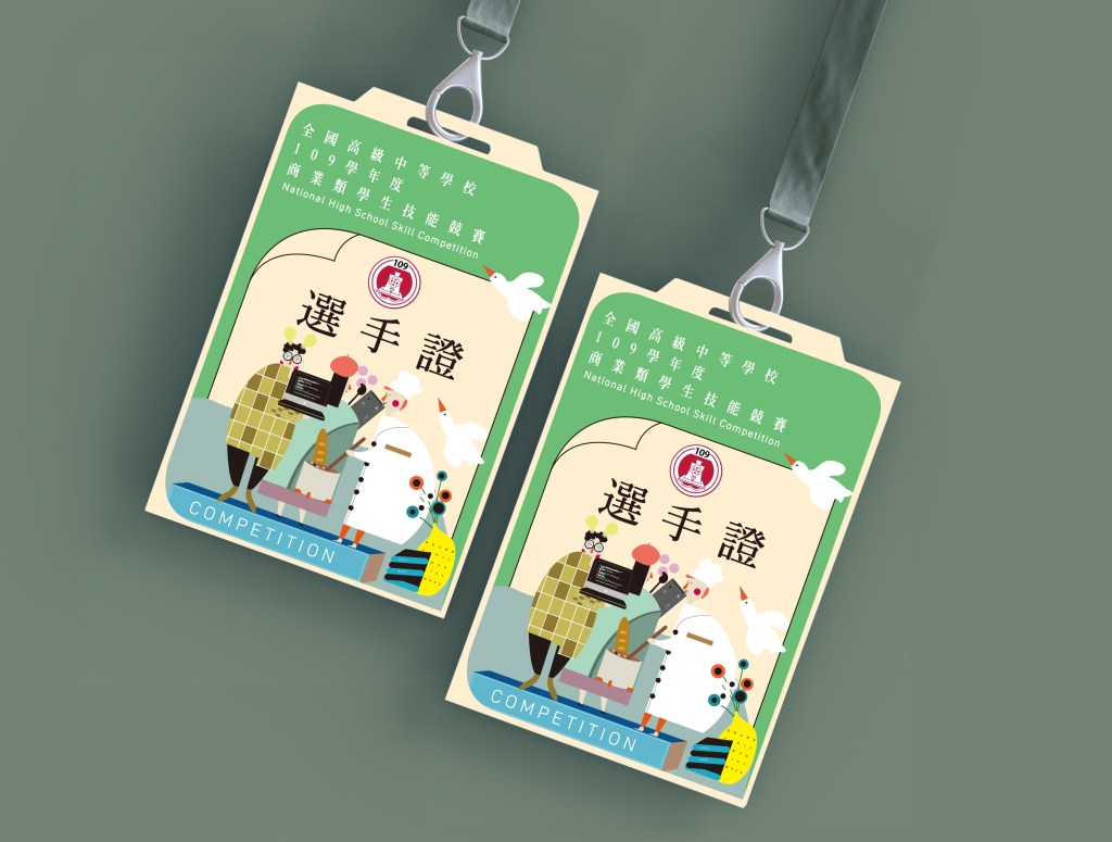 沿用主視覺形象設計的選手參賽證,用以識別參賽選手以及參賽項目等資訊。