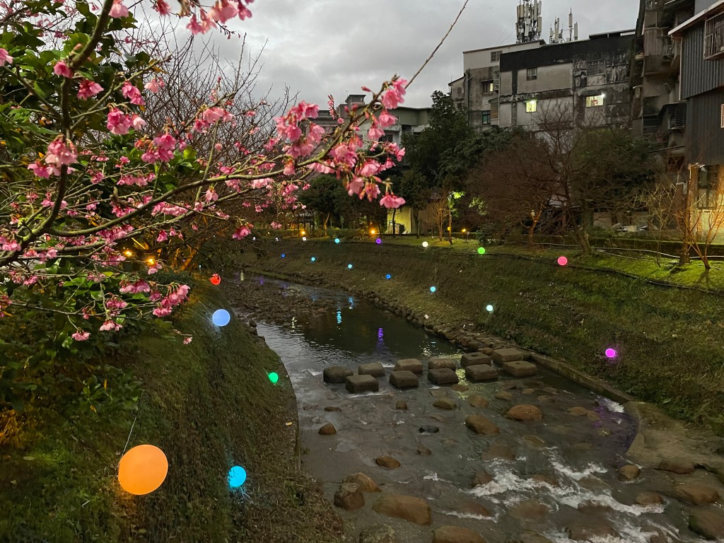 今年來做設計再次跟新北市汐止區文化里鄰里美化團隊合作,延續去年規劃,再次將康誥坑溪旁的步道打造成迎接新春的櫻花大道。