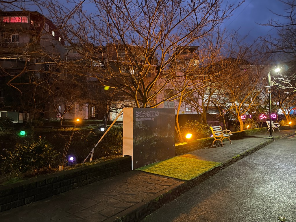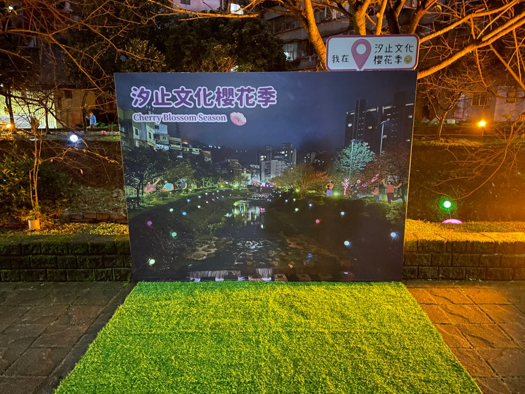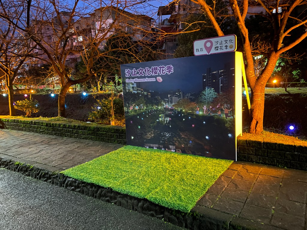 汐止區公所與當地文化里辦公處共同養護約200多株山櫻花,由於平地溫度較暖,每年都比山區櫻花更早開花。此外,河岸兩條步道非常輕鬆好走,最適合長輩散步,或是親子同遊,晚上也是居民們飯後休息、放鬆散步的最佳地點,所以晚間的照明就很重要,本次規劃的重點在於將去年規劃的櫻花季做特色延伸、增添居民與櫻花大道的互動、配置晚間步道亮點。