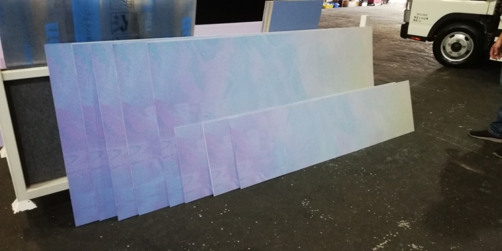 為了讓展覽更豐富、精彩,來做設計會為學生設計規劃許多特殊材質、呈現方式、展示素材,而這些發想都會在進場前就先到各個廠商那完成製作!