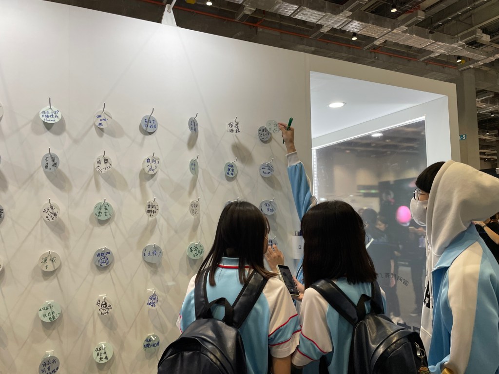 讓民眾將觀展心得寫在便條紙並吊掛在留言牆面增加互動體驗。