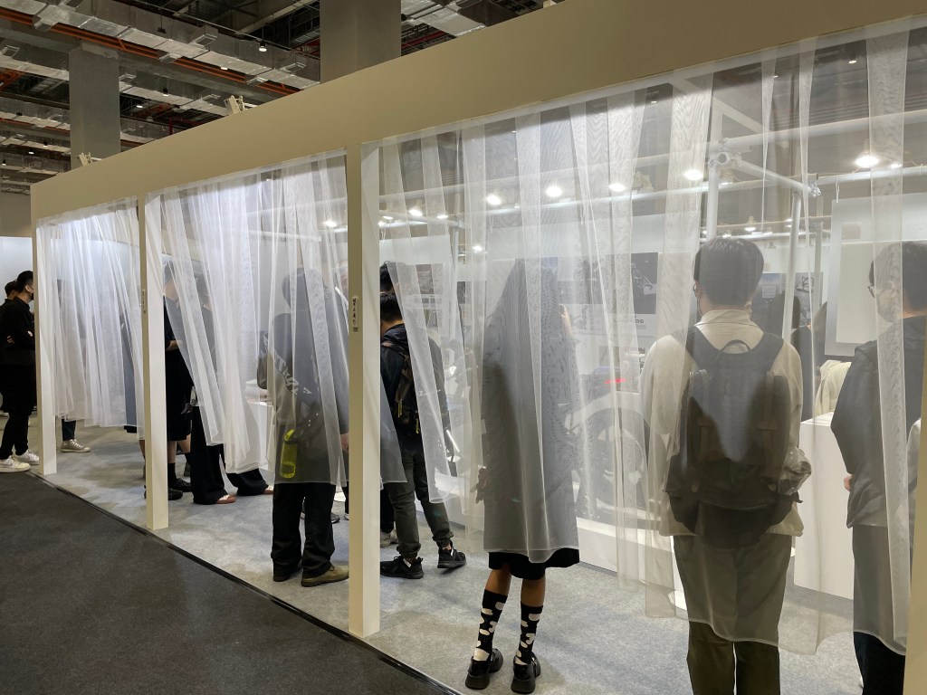 本屆攤位外觀採用白木作作為主要結構,搭配布簾營造出優雅知性的整體質感,側邊採用了透明壓克力作為可進入的造型拍照區與掛鉤互動留言區,增添豐富度與趣味性,抓住路過民眾的目光!攤位內則選用白色鋼管結構,與木製展櫃搭配,營造工業設計的風格,以凸顯同學們精心設計的畢業製作。
