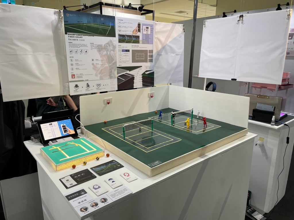 ≋ 有感複合式球場造成運動時眼花撩亂,或地線斑駁讓運動體驗下降,而智能球場使用光纖取代舊式的地線在同一場地依使用者需求不同而改變球場的地線,達到同一場地多功使用。