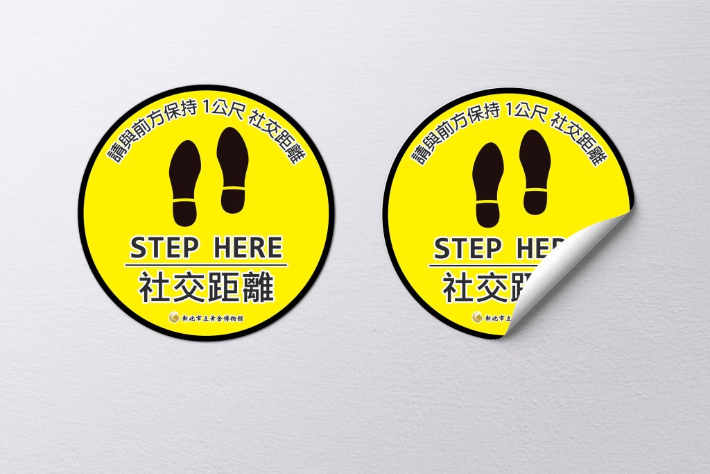 張貼於各展館排隊區,標示出安全社交距離,讓參觀民眾能夠落實遵守排隊距離。