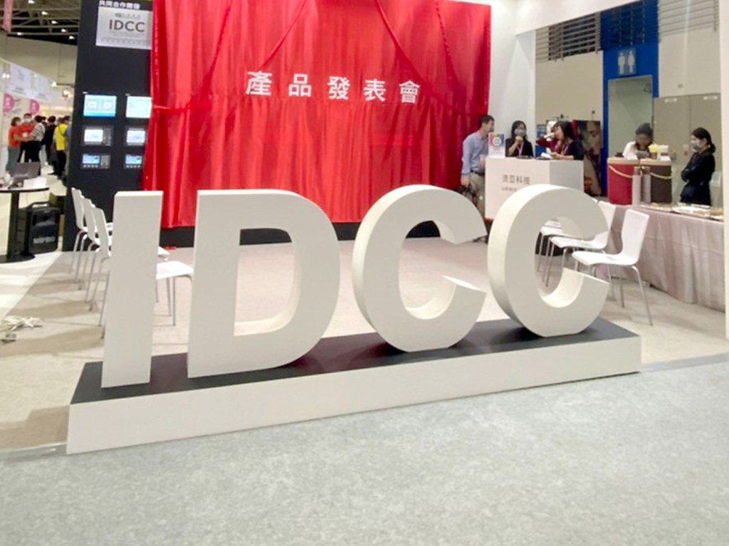 大電視牆為本次攤位主體,從電視牆面延伸出屋頂與牆面,既可保持攤位的完整性又不會有被死板的牆面束縛住的感覺,在攤位的對角設置此次發表品主題IDCC 3D立體裝置,打破創意的界線,從2D平面跳脫到3D立體,多了一個維度,多了新的可能性,實際面而言,3D Logo吸引目光之餘,還可作為做區域分隔,在開放空間規劃時製造視覺差的效果,更是一個能讓參觀者拍照打卡的絕佳標的物。