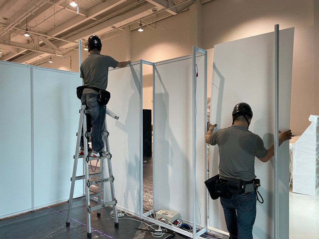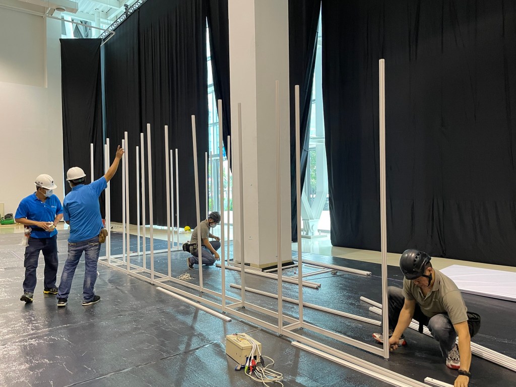 事前的場勘是很重要的!確定了展出地點後,來做設計將會前往展出地點丈量實際展區尺寸,並註記現場的狀況,在規劃時才能準確無誤。